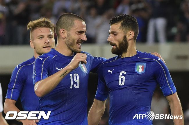 이탈리아는 임모빌레와 자자의 투톱을 필두로 키엘리니, 보누치, 바르잘리 유벤투스 삼총사가 스리백을 구축했다. 중원은 모타와 피를로, 자케리니가 지켰다. 좌우 윙백으로 엘 샤라위와 칸드레바가 출격했다. 골키퍼 장갑은 시리구가 차지했다.
