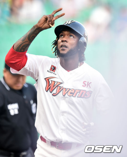 SK 외국인 선수 헥터 고메즈(28)가 다시 시작부터 홈런을 터뜨렸다.