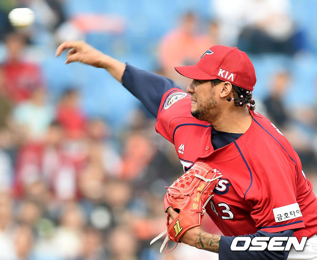 KIA 외국인 투수 헥터 노에시가 한화에 뭇매를 맞았다.