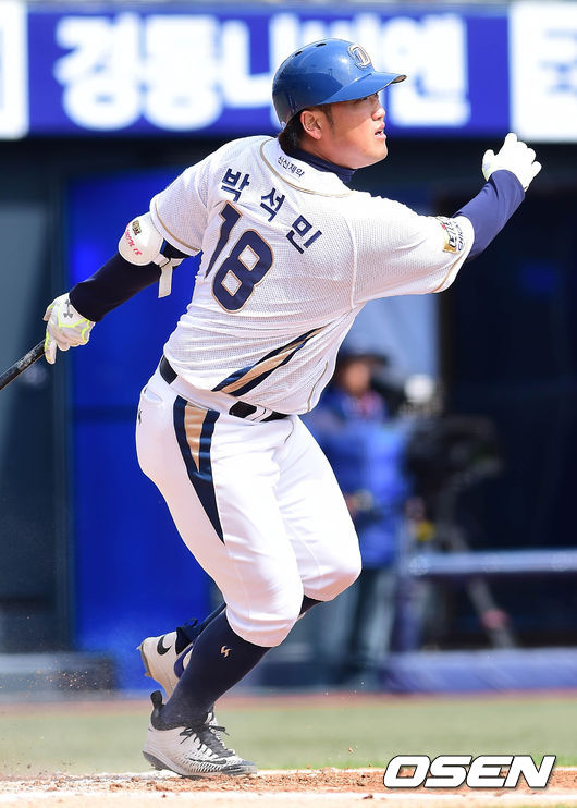 박석민은 4-1로 앞선 8회 1사 후 김정훈 상대로 또다시 좌측 펜스를 넘어가는 솔로 아치를 그렸다. 개인 11번째 연타석 홈런이다. /orange@osen.co.kr