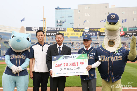 NC는 경상남도교육청(교육감 박종훈), NH농협은행 경남본부(이구환 본부장)와 함께 경남지역 소규모 학교 학생들이 스포츠 문화를 체험할 수 있도록 9일(목) 넥센 히어로즈와의 홈경기 관람 행사를 열었다. NC는 스포츠 문화 확산 및 청소년 체육활동 장려를 위해 경상남도교육청, NH농협은행 경남본부와 2013년부터 매년 경남지역 소규모 학교를 홈경기에 초청하고 있다. 작년까지 총 51개교 2,040여명이 NC 다이노스 홈경기를 무료로 관람했다.
