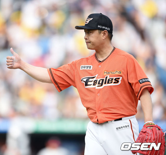한화는 11일 대전 LG전 선발투수로 베테랑 우완 송신영(39)을 내세웠다. 에스밀 로저스가 팔꿈치 염증으로 이탈한 뒤 이날 대체 선발이 필요했고, 김성근 감독은 송신영 카드를 꺼내들었다. 경기 전 김 감독은 "정민태 코치가 '송신영이 선발로 쓰자'고 하더라. 좋다고 하니 믿어보겠다"고 기대를 나타냈다.
