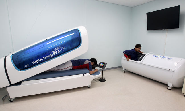 고출력 산소 공급으로 효과적인 피로 회복을 돕는 산소탱크는 신진대사 및 혈액순환을 촉진시켜 근육 및 골격의 상처 치유에 도움이 되는 장비이며, 혈류 순환 마사지를 해주는 아쿠아 마사지 장비는 근골격계 통증을 개선해주고 효과적인 피로 회복을 돕는다.