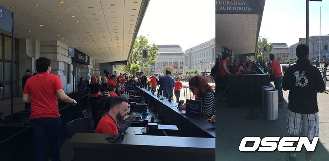 그러면서도 동시에 자유스러운 분위기도 느껴졌다. 세계 각국에서 온 개발자들은 행사 등록을 위해 오디토리엄 앞에 마련된 신청부스를 찾았다. 이들은 등록하면 애플이 나눠주는 등번호 '16' 숫자가 적힌 재킷으로 동질감을 서로 나누는 모습이었다. 이번 행사를 보기 위해 인도에서 날아왔다는 한 관계자는 "등번호 '16'은 올해가 2016년이어서 그렇다"라고 설명해줬다. 또 이들은 오디토리엄 정문 밖에 붙은 대형 애플 마크를 배경으로 사진을 찍는가 하면 지붕에 펄럭이는 애플 깃발, 주변 전경도 빠지지 않고 찍었다.