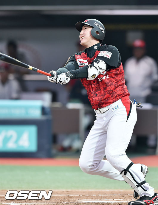 3회에도 선두 오정복이 볼넷으로 출루한 뒤 좌측 빠지는 2루타를 터뜨리며 무사 2·3루 찬스를 연결했다. kt는 3회에만 대거 4득점하며 승기를 잡았다. 복귀전부터 4타수 2안타 1타점 2득점. 안타 2개 모두 장타로 경기 초반 흐름을 kt 쪽에 가져오는 중심타자 역할을 다해줬다.
