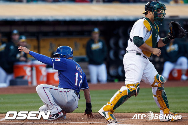 1회 오클랜드 선발 에릭 서캠프를 상대로 침착하게 볼넷을 고른 추신수는 이어진 1사 2,3루에서 루아의 희생플라이 때 홈을 밟아 시즌 5번째 득점을 올렸다. 치리노스의 3점 홈런이 터진 직후 맞이한 2회 두 번째 타석에서는 1루수 땅볼에 머물렀다.