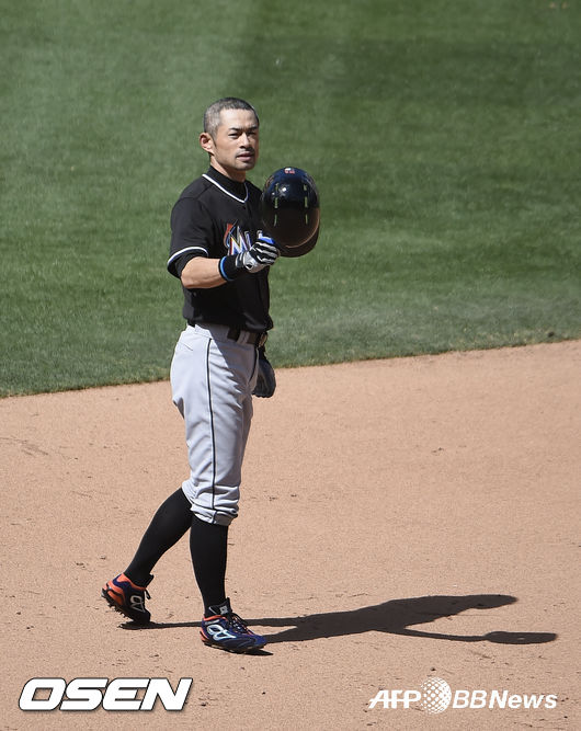 이치로는 16일(이하 한국시간) 미 캘리포니아주 샌디에이고의 펫코파크에서 열린 샌디에이고와의 경기에서 1회 첫 타석에서 내야안타를 기록한 것에 이어 9회 마지막 타석에서는 2루타를 치며 5타수 2안타를 기록했다.