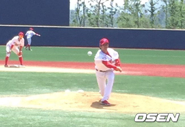 김정수 투수 코치는 "오전 10시에 경기여서 그런지 첫 경기보다 스피드는 낮았다. 가볍게 볼을 던지며 커브를 시험했다. 구종을 점검하는 차원에서 던지는 것이기 때문에 안타는 의미가 없다"고 말했다. 이어 "다음주에는 삼성 3군을 상대로 연투를 하면서 구위를 끌어올릴 것이다"고 말했다. /sunny@osen.co.kr