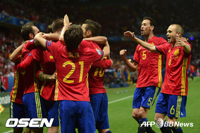 무적함대 스페인이 터키를 완파하고 유로 2016 16강에 진출했다. 스페인은 18일(한국시간) 새벽 프랑스 알리안츠 리비에라서 열린 대회 조별리그 D조 2차전서 터키를 3-0으로 대파했다.