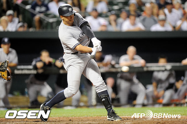 한편 이 홈런은 양키스 역전승의 신호탄이 됐다. 로드리게스의 홈런으로 2점을 추격한 양키스는 8회 벨트란의 동점 2점포에 이어 4-4로 맞선 9회에는 엘스버리의 2타점 적시타 등으로 3점을 뽑으며 7-6으로 역전승했다. /skullboy@osen.co.kr