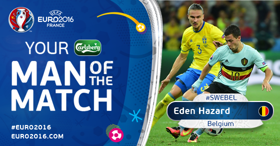 붉은악마의 캡틴 에뎅 아자르(첼시)가 스웨덴-벨기에전 최우수선수(MOM)로 선정됐다.