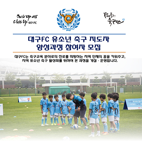 대구FC가 축구 교육 분야로의 진로를 희망하는 지역 인재의 꿈을 키워주고, 지역 유소년 축구 활성화를 위해 유소년 축구 지도자 양성 과정을 운영한다.