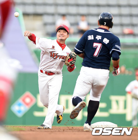 더 좋은 기회는 0-0으로 맞선 4회에 왔다. 선두 에반스가 중전안타로 포문을 열었고, 최주환이 우전안타로 뒤를 받쳤다. 무사 1,2루 상황이었다. 하위타선으로 이어지지만 적어도 선취점은 기대할 수 있는 상황. 여기서 두산 벤치는 작전을 걸었다. 허경민에게 버스터를 지시했다.