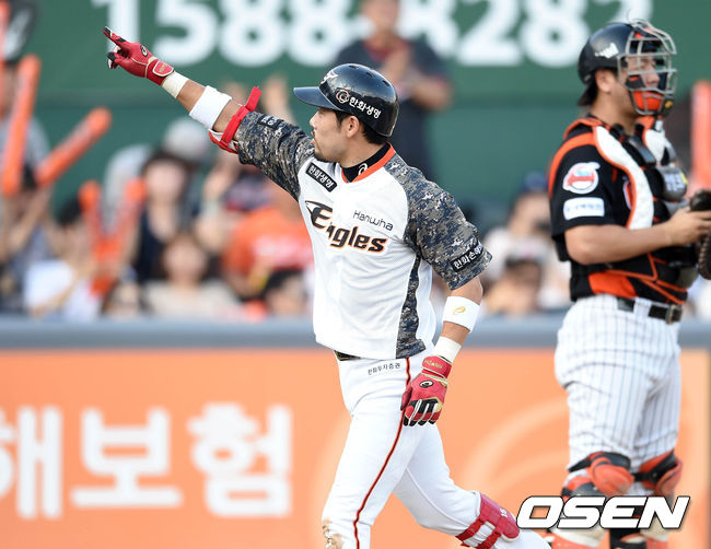 이날 이용규는 3회 홈런을 치고 난 뒤 홈으로 들어오며 경기장을 찾은 가족들을 가리키며 기쁨을 표시했다. 그는 "가족들이 야구장에 오면 신기하게 팀이 잘 돼 좋다"며 활짝 웃어보였다. 아내 유하나씨와 아들 도헌군이 지난해부터 이글스파크를 찾았을 때 한화 성적은 10승1패1무로 승률이 무려 9할9리다. /waw@osen.co.kr