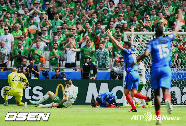 프랑스는 26일(한국시간) 프랑스 스타 드 리옹에서 열린 유럽축구연맹(UEFA) 유로 2016 16강 아일랜드와 경기서 2-1로 역전승을 챙겼다.