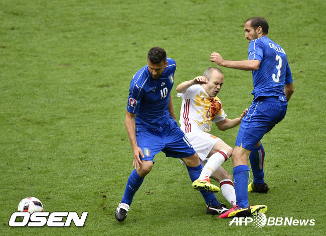 이탈리아의 최전방 공격수인 에데르와 펠레도 적극적으로 수비에 가담했다. 스페인이 공간을 찾기 어려웠던 이유다. 게다 이탈리아의 조직적인 수비는 물 샐 틈이 없었다. 이탈리아가 자랑하는 빗장 수비는 또 한 번 빛을 발했다.