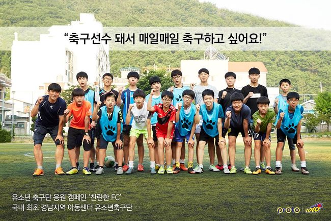 마지막으로, 지난 2012년 1월에 창단한 ‘찬란한FC’ 의 경우 경남지역 아동센터에 다니는 아이들이 마음껏 뛰어 놀 수 있는 그라운드를 만들기 위해 창설된 축구단이다. 지역아동센터 축구단으로는 국내 최초인 찬란한FC의 이은경 단장은 “여러 운동 종목 중에서도 특히 유소년 축구의 저변 확대를 위해 유익한 캠페인을 만들어 준 케이토토 측에 매우 감사하게 생각한다” 고 소감을 밝혔다.