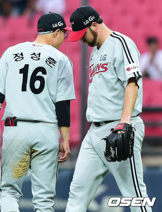 코프랜드는 6회말에 앞서 봉중근과 교체, 이날 투구를 마무리했다. LG는 6회초까지 1-4로 KIA에 끌려가고 있다. / drjose7@osen.co.kr