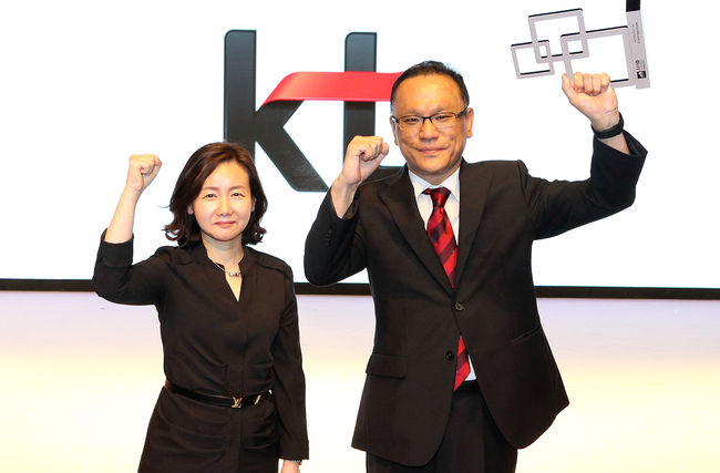 [사진] 아시아 모바일 어워드 2016 에서 ‘지니로 ‘최고의 모바일 음악 앱’ 수상한 KT 고객분석실장 고윤전 상무(왼쪽)와 KT 뮤직 조성수 부사장(오른쪽) /KT 제공