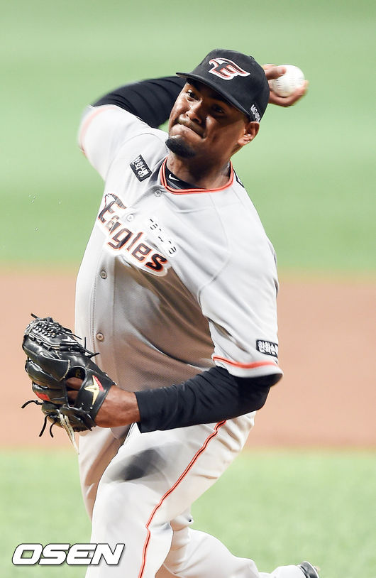 1회 카스티요는 2사 후 김하성에게 우전안타를 맞은 뒤 윤석민을 3루수 땅볼로 아웃시켰다. 2회에는 1사 후 채태인, 이택근에게 연속 안타를 맞고 박동원을 볼넷으로 내보내 1사 만루에 몰렸다. 그는 박정음을 156km 직구로 투수 앞 병살타 처리했다.