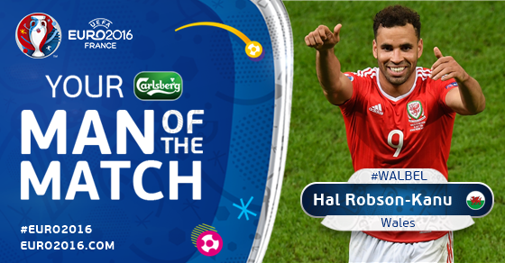 결승골의 주인공 롭슨-카누가 벨기에-웨일스전 MOM(경기 최우수선수)으로 선정됐다.