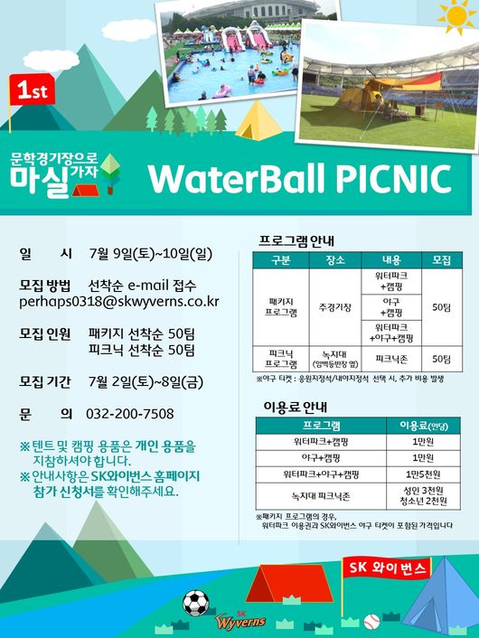 [OSEN=김태우 기자] SK 와이번스가 오는 9일부터 10일까지 2일간 문학경기장에서 ‘문학경기장으로 마실 가자’ 프로젝트의 일환으로 'WaterBall Picnic' 프로그램을 선보인다.