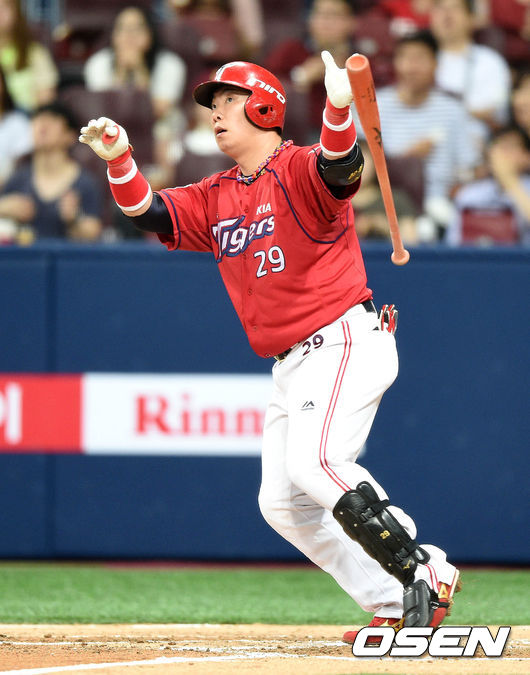 나지완은 비거리 125m의 대형 홈런으로 시즌 13호포를 기록했다. 팀은 3-0으로 달아났다. /autumnbb@osen.co.kr