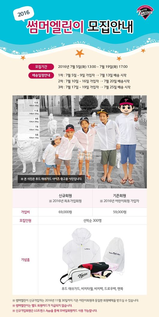 서울 LG트윈스가 여름방학을 맞이하여 2016시즌 ‘썸머엘린이’ 어린이회원을 새롭게 모집한다.