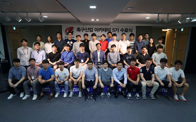 한국프로축구연맹(총재 권오갑, 이하 연맹)이 프로 스포츠 단체로는 최초로 지난 2013년 설립한 '축구산업아카데미(Football Industry Academy)' 5기생 교육이 총 15주 100시간 과정을 마치며 2일 오후 서울 신문로 축구회관 2층 다목적회의실에서 수료식을 가졌다.