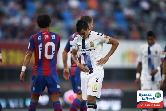 #후반 28분 아크 오른쪽에 있던 이종호가 문전으로 살짝 띄우는 패스를 한다. 레이어가 김신욱의 유니폼을 잡아 당긴다. 무게 중심이 흐트러진 김신욱은 넘어지고 만다.