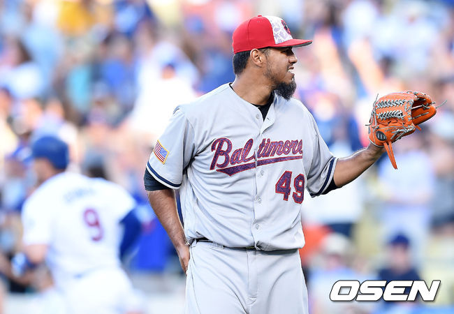 5일(한국 시각) 미국 캘리포니아주 로스앤젤레스 다저스타디움에서 '2016 메이저리그' LA 다저스와 볼티모어 오리올스의 경기가 열렸다.