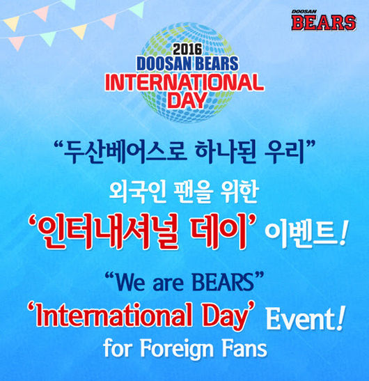 두산 베어스는 8일부터 잠실야구장에서 열리는 KIA와의 주말 홈 3연전에서 외국인 팬을 대상으로 한 '인터내셔널 데이(International Day)' 이벤트를 실시한다.