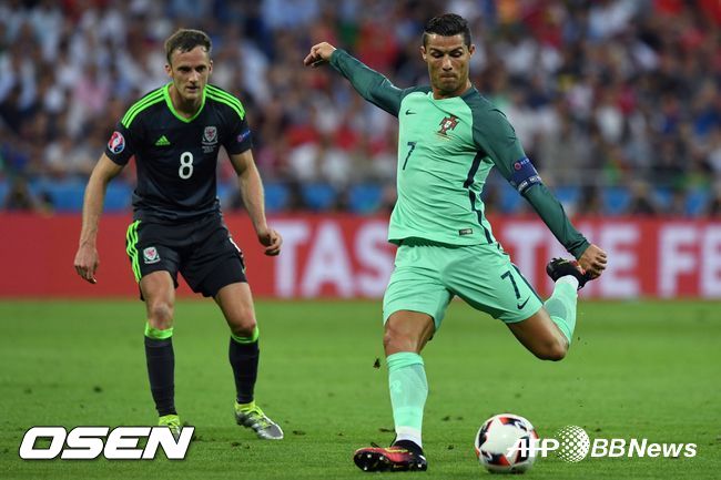 포르투갈은 후반 5분 선제골을 뽑아냈다. 주인공은 호날두였다. 프리킥 찬스서 게레로의 크로스를 머리에 정확히 맞히며 웨일스의 골망을 흔들렸다. 대회 통산 9골을 신고한 호날두는 득점 1위인 프랑스 축구 전설 미셸 플라티니와 어깨를 나란히 했다.