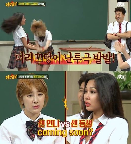 김희철의 ‘미친 애드리브’도 ‘원조 센 언니’ 서인영과 ‘센 언니’ 동생 제시 앞에서는 약한 느낌이었다. 두 사람은 머리끄덩이를 잡고 싸워 형님들을 놀라게 하는가 하면 형님들의 짓궂은 질문도 유쾌하게 받아치는 내공을 보여줬다.