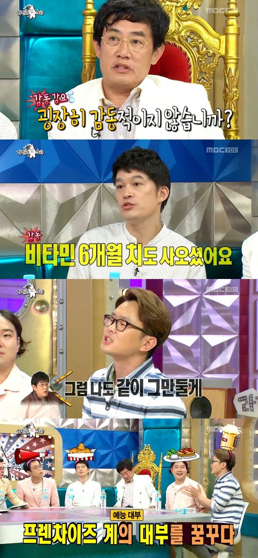 지난 6일 방송된 MBC 예능프로그램 ‘라디오스타’에서는 킹으로 불리는 남자 이경규를 비롯해 그의 사단으로 불리는 개그맨 이윤석과 윤형빈, 가수 유재환, 배우 한철우가 게스트로 출연했다.