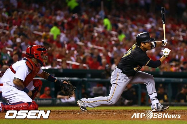 이어 7회초 기어이 스코어를 뒤집었다. 그 중심에 강정호가 있었다. 데이비드 프리즈의 볼넷과 앤드루 매커친의 중전 안타로 잡은 1사 1,3루 기회. 강정호는 세인트루이스 우완 조나단 브록스턴의 3구째 바깥쪽 낮은 89마일 슬라이더를 힘껏 밀어쳤다. 타구는 우중간을 갈랐고, 주자 2명이 모두 홈을 밟았다. 6-5 역전. 시즌 9번째 2루타이자 30타점 달성 순간이었다.