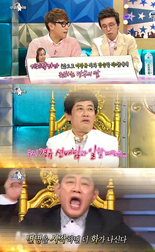 그는 앞으로 이경규과 함께 방송하는 작가들에게 당부의 말을 이렇게 전했다. ‘첫 번째 무조건 피해있어라. 눈에 보이면 더 화가 나신다. 둘째 변명하지 마라. 변명을 시작하면 더 화가 나신다’라고.