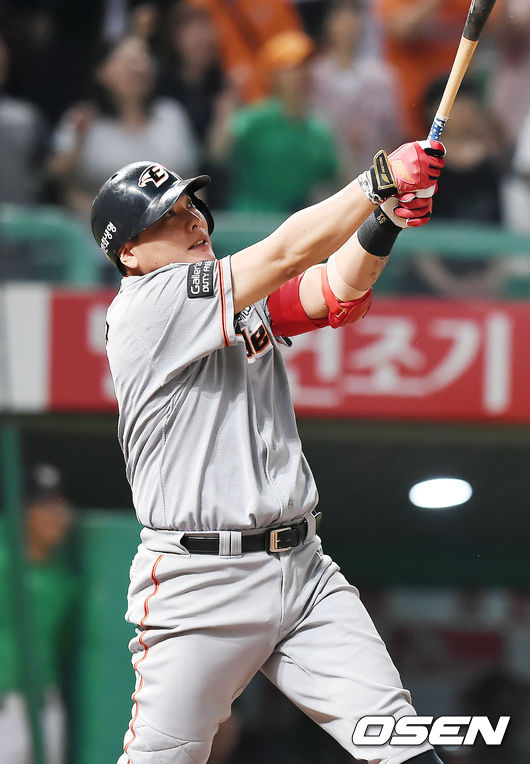 김태균은 지난 7일 문학 SK전에서 8회 역전 결승 투런 홈런 포함 3안타 경기를 펼쳤다. 지난 5월24일 고척 넥센전을 시작으로 최근 34경기 연속 출루 행진을 이어간 김태균은 이날로 시즌 출루율 4할6푼7리를 마크했다. 나지완(KIA·.465), 에릭 테임즈(NC·.465)를 밀어내며 시즌 개막 후 처음 출루율 1위로 올라선 것이다.