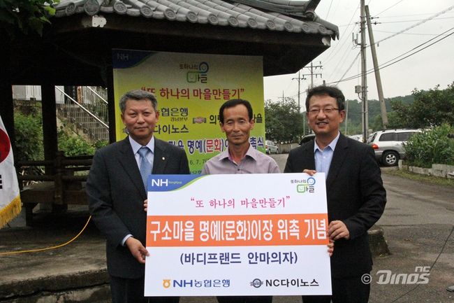 NC다이노스 이태일 대표와 NH농협은행 이구환 경남본부장이 7일 경남 의령군 용덕면 구소마을의 문화이장과 명예이장으로 위촉됐다.