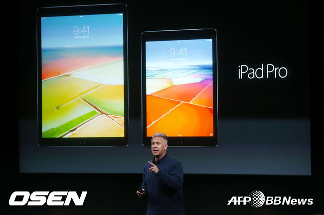 [사진] 지난 3월, 필 쉴러 애플 마케팅 담당 수석 부사장이 아이패드 프로를 소개하는 모습. /ⓒAFPBBNews = News1(무단전재 및 재배포 금지)