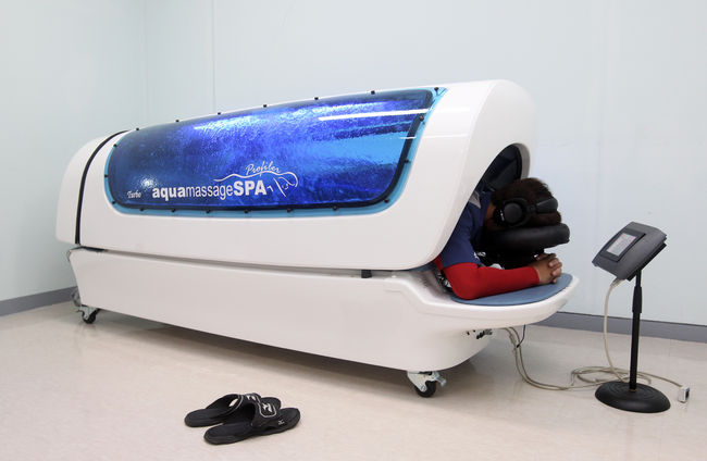 수중치료실에는 물의 온도와 깊이, 수류 등을 유기적으로 조절해 재활훈련을 하거나 뭉친 근육을 풀 수 있는 수중 트레드밀이 설치돼 있다. 수중 트레드밀은 가로 6.1m 세로 3.47m로 3~4명이 동시에 치료와 재활 프로그램을 받을 수 있다.