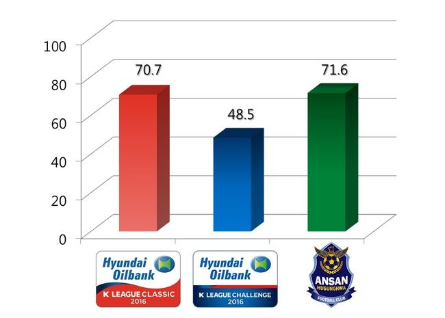 K리그 클래식 구단들의 수치와 비교했을 때도 중위권에 속하는 수치이며, 클래식 구단 전체 유료 관중 비율을 상회하는 수치이다.