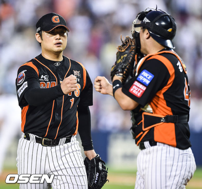 1사 만루 위기에서 벗어난 손승락은 포수 강민호와 하이파이브를 하며 기쁨을 감추지 못했다. 위기 뒤 찬스라고 했던가. 롯데는 연장 11회 무사 1루서 황재균의 좌월 투런 아치로 4-2 승기를 가져왔다.