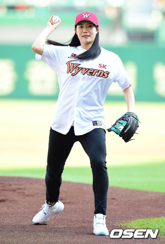 OSEN: 그러고 보니 최근에 시구할 때 엄청 좋아하더군요. 키 크고 귀여운 남자를 좋아하네요? 김광현도 188cm이에요.