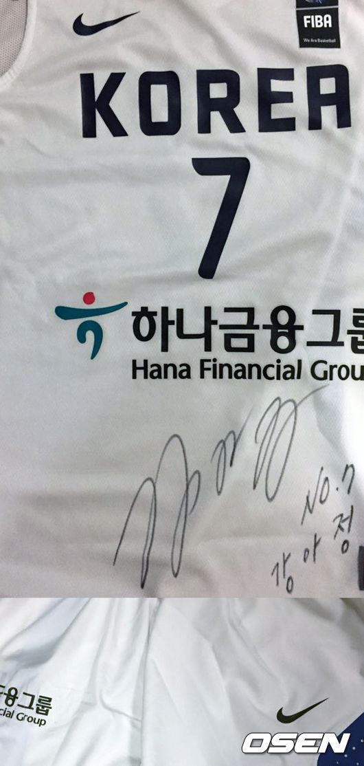 [이메일로 사연과 휴대폰번호, 선물 받을 주소를 남겨주시는 팬들 중 2명을 뽑아 강아정 선수의 국가대표 유니폼 상하의를 각각 선물로 드립니다.]
