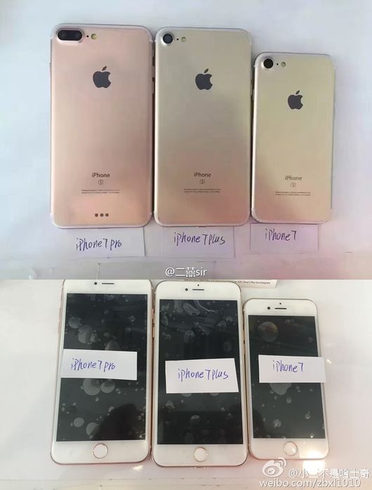 18일(현지시간) 프랑스의 IT매체 NWE(노웨어엘스)의 편집장 스티브 허머스토퍼는 중국 SNS 웨이보에 유출된 2장의 사진을 소개하며, 아이폰 7은 4.7인치 '스탠더드' 모델을 비롯해 5.5인치 '플러스'와 '프로' 3가지 모델로 출시될 것이라고 전했다.