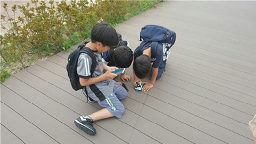 ‘포켓몬 Go’에 푹 빠져있는 초등학생들. 어디서 왔냐고 물어보니 엑스포공원 바로 옆에 위치한 청봉초등학교 학생들이라고 한다. 이 게임을 하러 서울에서 속초까지 온 어른들이 주변에 이렇게 많은데, 방과 후 곧바로 게임을 즐길 수 있는 행운이라니.