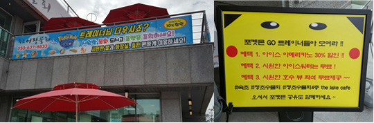 속초의 열풍을 보여주는 하나의 유쾌한 예시. 포켓몬 열풍이 분지 불과 며칠되지도 않은 시점인데, 엑스포 공원 주변 식당들은 이미 재빠르게 시류의 흐름을 타고 있었다.