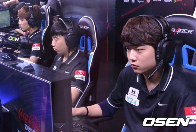 KT가 27일 서울 상암 OGN e스포츠 전용경기장에서 열린 '2016 LoL 챔피언스 코리아(이하 롤챔스)' 서머 2라운드 롱주와 경기서 단단한 운영으로 1세트 승리를 거뒀다.