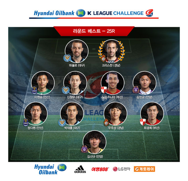 경남FC 외인 크리스찬이 K리그 챌린지 25라운드 최우수선수(MVP)로 선정됐다.